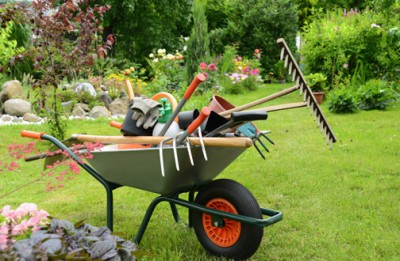 Sparten, Sägen, Harken, Scheren, Rasenmäher (Strom), Heckenschere(Strom), Garten Stühle, Hollywood Schaukel, Tische, Gartenschlauch + Trommel, Leitern, Schubkarre